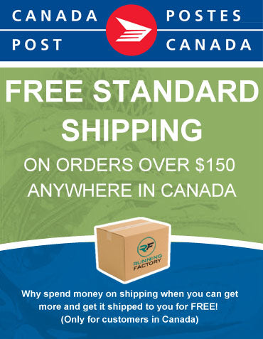 Shipping is free on orders over $150 (before taxes) at The Running Factory. We ship all orders by Canada Post. All in-stock orders will ship within 1 business day (with exception to high volume orders). WE SHIP TO CANADA ONLY!